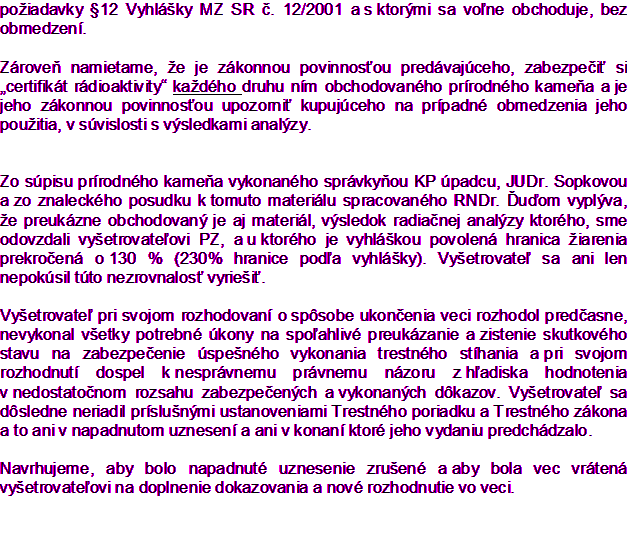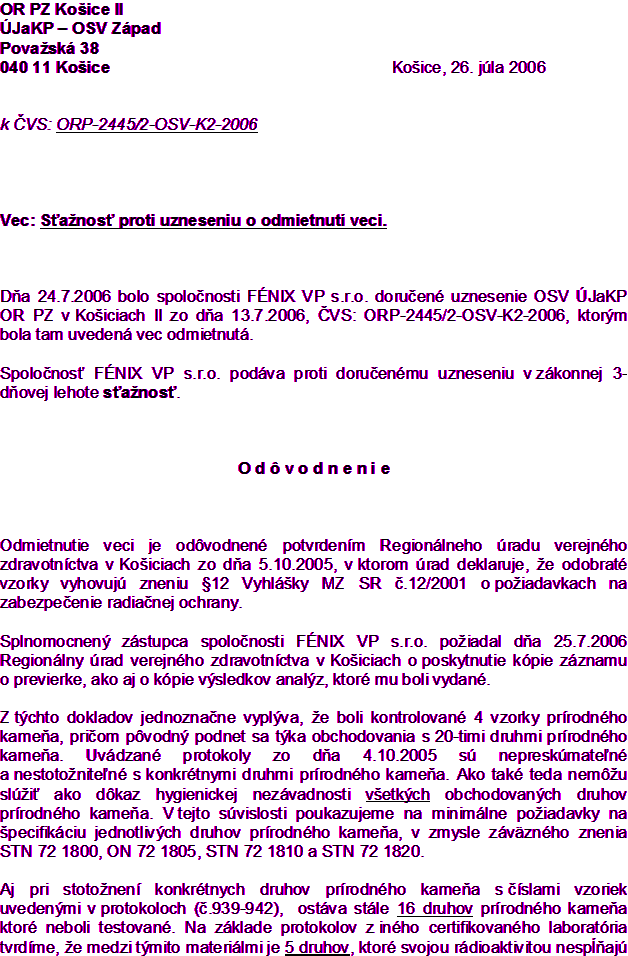 Sťažnosť proti uzneseniu vyšetrovateľa o odmietnutí veci